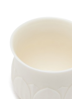 The Seiko Wakasugi ceramics embody organic elegance, each piece is crafted from porcelain clay sourced from Seto City, Aichi Prefecture to offer excellent transparency and a soft white hue. The unglazed, stoneware finish and delicate rim designs highlight the raw beauty of the material, while the gentle shade exudes a timeless, serene simplicity.