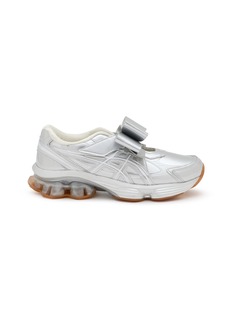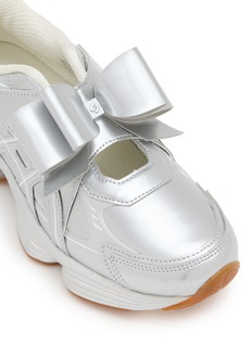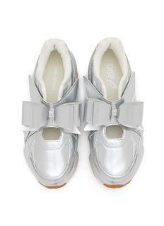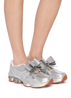 ASICS innovation meets SHUSHU/TONG's metallic elegance in this silver-white Gel-Kinetic Fluent . The sculptural bow cascades across luminous metallic leather, creating ethereal armor for modern women. Technical excellence merges with avant-garde aesthetics, delivering empowered femininity in every step.