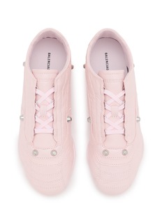 Step into effortless style with these Balenciaga pale pink sneakers. Featuring a sleek, low-top design crafted from supple leather, these shoes offer both comfort and a touch of luxury. The subtle detailing and clean lines provide a minimalist appeal, while the pastel shade adds a soft, contemporary edge to your footwear collection.