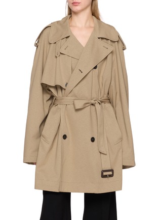 Soft tailoring meets subversive proportion in this cropped trench by Balenciaga. Rendered in fluid jersey, it reworks a heritage silhouette with ease and attitude—ideal layered over sharp tailoring or styled loose for directional city dressing.