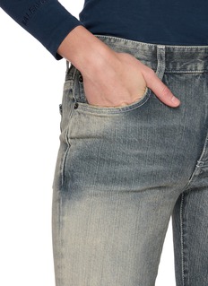 Balenciaga reworks classic denim proportions with a playful edge in these cropped capri pants, finished with plush faux fur cuffs. The flared silhouette and faded wash bring contrast and texture, pairing effortlessly with heels for elevated everyday styling.