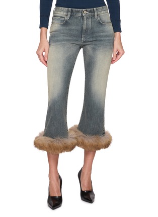 BALENCIAGA Fur Trim Flared Cotton Denim Capri Pants
