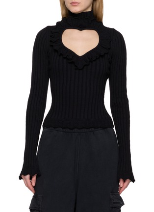BALENCIAGA - Long Sleeve Heart Cutout Turtleneck Ribbed Knit Top