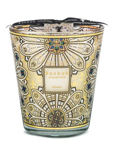 The Rosace candle pays tribute to Gothic architecture and the spiritual light of cathedrals. Its glass is covered with a precious silk-screen print, where gold and subtle colours draw motifs inspired by medieval rose windows. Like luminous lace, this refined décor is set against a background of fleur-de-lis, an emblem of nobility and purity.