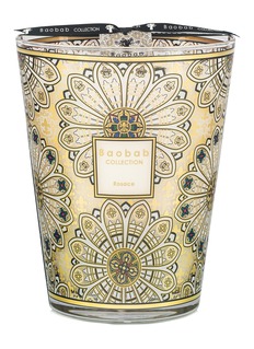 The Rosace candle pays tribute to Gothic architecture and the spiritual light of cathedrals. Its glass is covered with a precious silk-screen print, where gold and subtle colours draw motifs inspired by medieval rose windows. Like luminous lace, this refined décor is set against a background of fleur-de-lis, an emblem of nobility and purity.