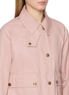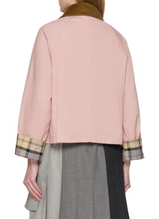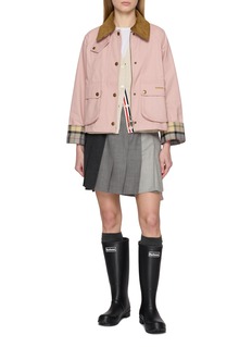This striking Barbour jacket combines classic style with a bold twist. The pink fabric is accented with plush corduroy on the collar and checks on the cuffs, adding a pop of colour that makes this piece stand out. Ideal for adding a splash of colour to rainy days.