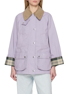 This striking Barbour jacket combines classic style with a bold twist. The soothing purple fabric is accented with plush corduroy on the collar and checks on the cuffs, adding a pop of colour that makes this piece stand out. Ideal for adding a splash of colour to rainy days.