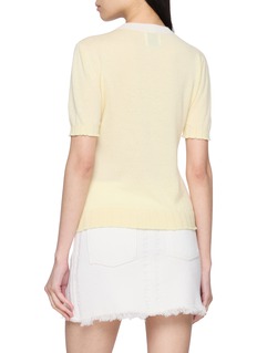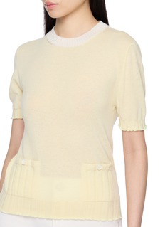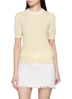 A refined warm-weather essential, this short sleeve knit top is crafted in a lightweight cashmere-cotton blend with delicate flat rib detailing. Barrie balances softness and structure with subtle scalloped edges and discreet buttoned accents, making it an elegant choice for polished daytime looks or effortless layering.