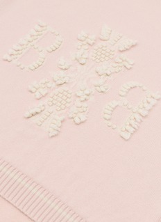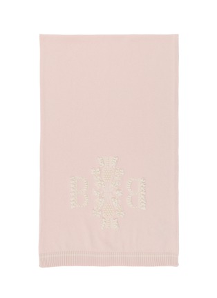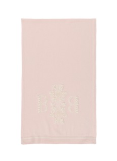 This Barrie scarf combines luxurious softness with delicate artistry, featuring a light, breathable knit and an intricate thistle knit logo motif. Its understated pale hue and refined detailing make it a timeless accessory for effortless elegance.