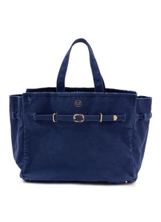 Perfect for stuffing with all your holiday gifts! This tote bag from Baz & Friends features a rich blue hue and a subtle foiled Baz motif, adding a touch of charm to your look. With its adjustable belt strap and spacious interior, this carry-all is both elegantly timeless and practical.