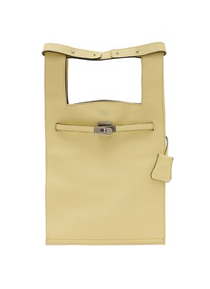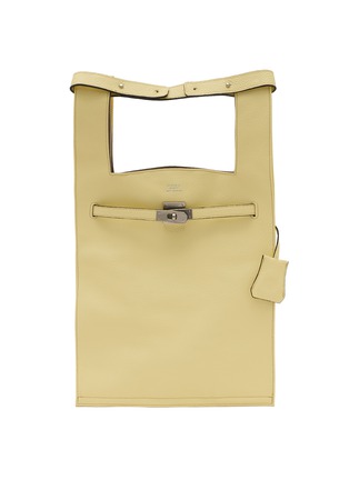 Quietly architectural, the large Market Bag is cut in shrink leather with squared U-handles and a belt-style turn-lock. Its tall, softly structured profile opens to a spacious main compartment, delivering polished ease from weekday commutes to pared-back weekend dressing.