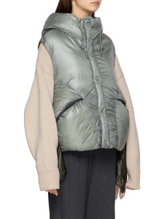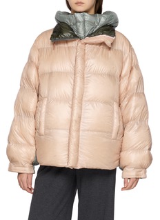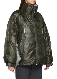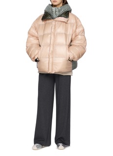 This Beautiful People piece reimagines winter armour as a sculptural, ever-shifting form — a reversible down blouson built for modular layering. Glossy nylon panels, voluminous quilting and a cocooned hood compose a silhouette that transforms with each configuration, lending drama to both city wanderings and weekend escapes.