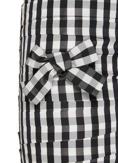Revered for feminine silhouettes and vibrant designs, BERNADETTE presents this mini skirt, boasting a classic monochromatic veneer with a gingham motif. Defined by bow appliques all-over, this captivating piece can add a tasteful spin to your everyday wardrobe effortlessly.