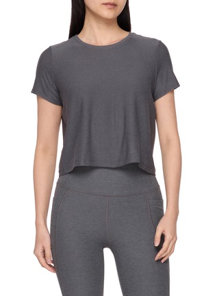An effortless layer for days that move between plans, this cropped tee balances softness with lightness in Beyond Yoga’s Featherweight Spacedye. The relaxed cut drapes cleanly over active or casual looks, delivering ease without sacrificing polish.