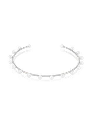 Bijou de M distills modern romance into a choker, crafted from 18K gold-plated sterling silver and adorned with a row of freshwater pearls. Understated yet luminous, it slips on for everyday polish and after-dark ease. Wear solo for purity or stack with fine chains.