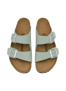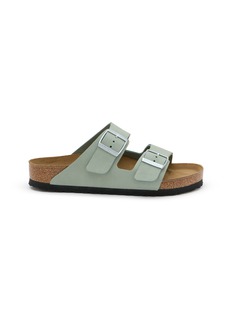 Birkenstock reimagines its iconic silhouette with luxurious materiality in these distinctive Arizona sandals. The sumptuous nubuck straps feature signature silver-tone hardware, whilst the anatomical cork footbed delivers unparalleled comfort. A masterful expression of German craftsmanship reimagined through elevated material selection and meticulous attention to detail.