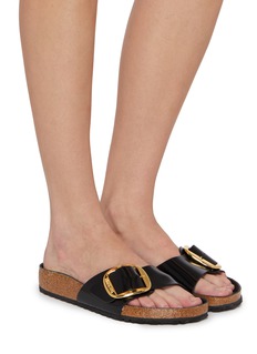 Birkenstock elevates everyday luxury with this sophisticated Madrid slide. The rich nubuck strap features a statement silver-tone buckle, whilst the legendary anatomical cork footbed delivers signature comfort. A masterful expression of German craftsmanship reimagined through premium material selection and meticulous attention to proportions.
