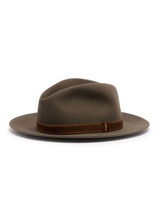 Step into timeless elegance with this Borsalino fedora, expertly crafted from premium felt. This hat boasts a rich taupe shade, complemented by a contrasting grosgrain band in a deep brown tone that adds a sophisticated touch. With its sleek design and exquisite craftsmanship, this piece is perfect for those who appreciate classic style with a modern edge.