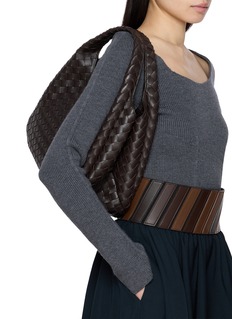 Crafted from buttery-soft Italian lambskin, this Bottega Veneta Campana shoulder bag showcases the house’s iconic Intrecciato weave in a timeless archival silhouette. Finished with a refined leather tie closure and discreet magnetic fastening, it marries artisanal craftsmanship with understated luxury.