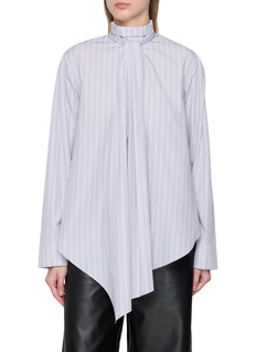 BOWTE's knot detail shirt is designed in a soft stripes for a subtle, textured look. The asymmetrical front knot and relaxed silhouette add a dynamic, artistic touch, blending sophistication with playful draping. A versatile statement piece that elevates both casual and polished ensembles with its modern, sculptural appeal.
