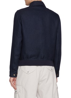 This Brunello Cucinelli jacket is a fine example of elegance meeting functionality. Crafted from a luxurious wool blend, it features a sophisticated dark blue hue, complemented by a subtle texture that enhances its visual appeal. The jacket is designed with a classic collar and a button-down front, incorporating traditional elements with a modern silhouette.