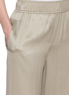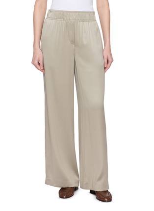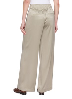 Fluid elegance defines these Brunello Cucinelli trousers, crafted from lustrous silk that drapes effortlessly through a wide-leg silhouette. The elasticated waistband offers relaxed comfort while maintaining a refined profile. Pair them with a soft knit or crisp shirt for understated sophistication from day to evening.