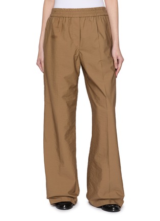 Shaded in a dark beige hue, these pants by Brunello Cucinelli exude quiet luxury. With its effortless elasticated waistband and wide leg silhouette, this pair lends a laid-back flair to your looks.