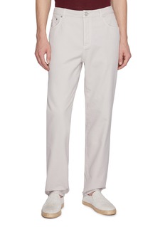 Elevate your wardrobe with these Brunello Cucinelli trousers, a testament to understated luxury. Crafted from a sumptuous cotton blend, these trousers offer a smooth, refined texture and a pristine ivory hue that exudes elegance. The design features a classic five-pocket configuration and a sleek, straight-leg cut that makes them versatile for both casual and formal occasions.