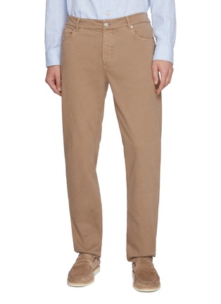 Step into timeless elegance with these Brunello Cucinelli trousers, expertly tailored for a refined fit. Crafted from a luxurious cotton blend, these trousers feature a soft, brushed finish that enhances the sophisticated neutral taupe hue, whilst the classic five-pocket design and subtle stitching details provide a polished look.