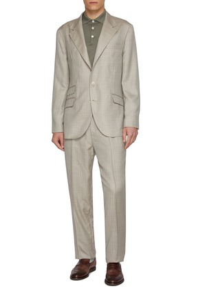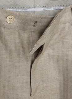 Discover the refined elegance of this Brunello Cucinelli blazer. The intricate herringbone weave and soothing hue lends a classic yet contemporary look, perfect for elevating any ensemble from business casual to evening wear.