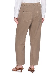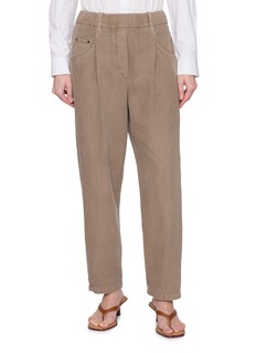 Infused with relaxed tailoring codes, these Brunello Cucinelli pants are crafted from a cotton and linen suiting blend, garment dyed for a softly lived-in finish. The gently tapered silhouette balances structure and ease—an elevated foundation for crisp shirting or lightweight knits.
