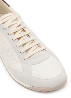 Brunello Cucinelli's low-top sneakers epitomize Italian craftsmanship with their clean minimalist silhouette and tonal paneling. The lace-up design features premium textured accents at the heel and side panels, while the ribbed rubber sole ensures refined comfort. Understated luxury and artisanal detailing define these versatile everyday trainers.