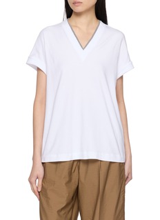 BRUNELLO CUCINELLI - Monili Embellished V-Neck T-Shirt