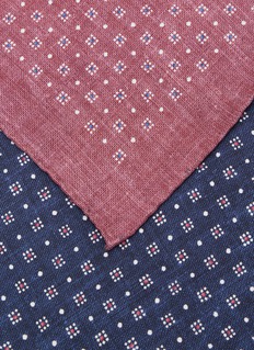 This Brunello Cucinelli pocket square introduces a touch of artisanal elegance to any gentleman's ensemble. Made from a luxurious linen blend, it features a tasteful burgundy hue accented with a delicate white and blue square pattern. The subtly textured fabric adds a refined, tactile appeal, perfect for complementing a range of suit colors and styles.