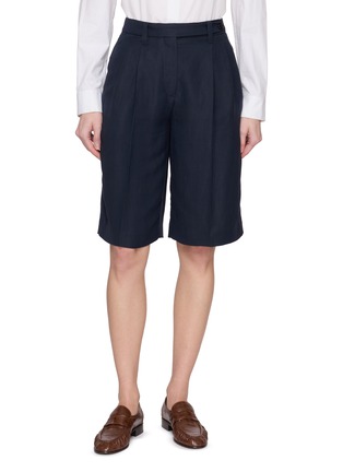 A refined interpretation of warm-weather tailoring, these Brunello Cucinelli Bermuda shorts are crafted from smooth viscose for a fluid drape. Front pleats introduce subtle structure, while the knee-length silhouette offers a polished yet relaxed feel. Style them with a crisp shirt or lightweight knit for effortless summer sophistication.