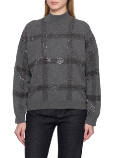 BRUNELLO CUCINELLI Sequin Check Mock Neck Wool Silk Sweater