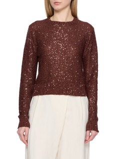 Imbue some sparkle into your wardrobe with this Brunello Cucinelli sweater, where metallic sequins are woven through the knit to create a luminous shimmer. The classic silhouette and soft, textured yarn blend comfort with understated glamour.