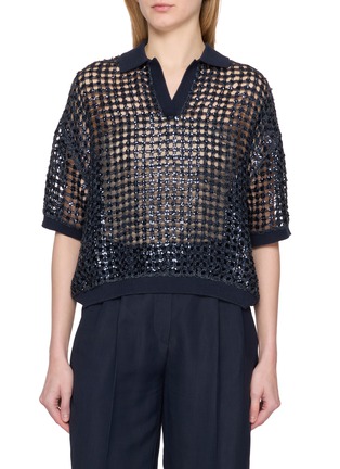 BRUNELLO CUCINELLI - Short Sleeve Polo Collar Sequin Sweater