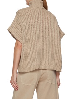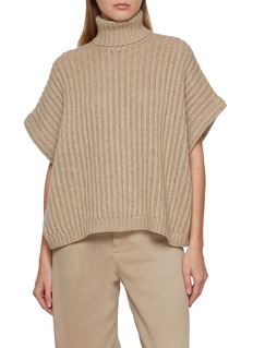 Textured rib knitting gives this Brunello Cucinelli cashmere sweater sculptural ease. With its short sleeves and generous turtleneck, the relaxed silhouette balances warmth and breathability—making it an elegant layering piece that pairs effortlessly with tailoring or denim.