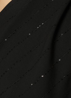 A refined expression of modern femininity, this sleeveless blouse reflects Brunello Cucinelli’s understated approach to elegance. The one-shoulder silhouette is defined by fluid draping and subtle surface embellishment, lending quiet depth to both tailored and evening looks.