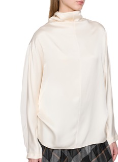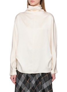 Endlessly luxurious, this blouse from Brunello Cucinelli exudes sophistication with its smooth silk fabric and drapey cut. Rendered in a soothing off-white hue for a timeless look, this blouse coordinates effortlessly with a midi skirt and leather boots.