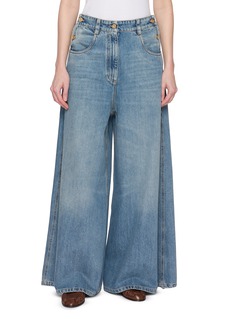Crafted from authentic washed denim, these Brunello Cucinelli jeans reinterpret classic five-pocket styling with an exaggerated wide-leg silhouette. The high-rise waist and fluid volume create a bold yet balanced proportion, while signature metal hardware refines the casual foundation.