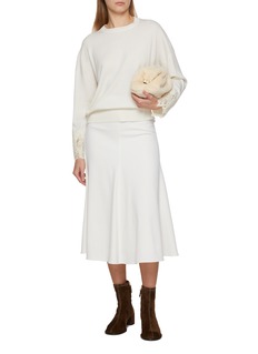 Crafted in pure virgin wool, this Brunello Cucinelli skirt embodies refined simplicity with its fluid flare silhouette. The clean lines and mid-length cut create timeless elegance, while the side zip fastening ensures ease. Perfect for pairing with cashmere knits or tailored blazers.
