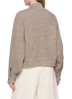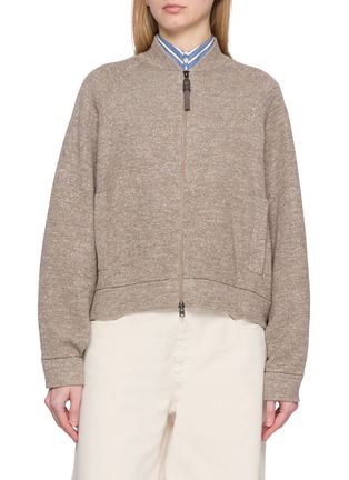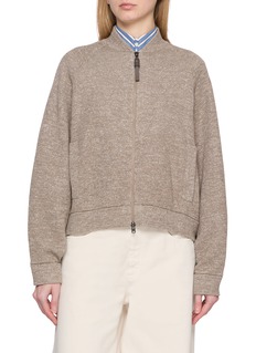 A refined take on a utilitarian classic, this Brunello Cucinelli jacket is crafted with a subtle shimmer to lend a captivating finish. Its sleek profile and versatile beige hue make it an elegant layering piece for transitional weather.