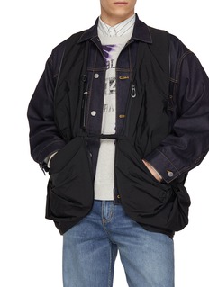 Following origami-inspired principles, the PO's structure reveals a series of intricate layers replicated in either bag or gilet form. The exterior features two hidden pockets and D-ring clips for attaching small items.