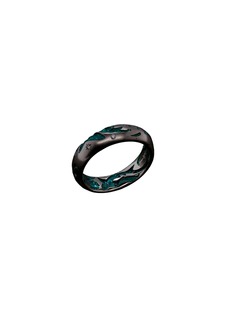 This ring from Castro Smith is an intricately designed piece of jewellery that showcases a captivating scene. With sharks wading through the depths of the ocean, these motifs are elevated by their turquoise plating that lends a vibrant colouring. A true work of art that will make a statement on any hand.