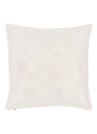 Gracefully detailed with linen-toned embroidery on a crisp white ground, the Trianon Cushion Cover from Celso de Lemos brings a soft decorative accent to refined interiors. Finished with subtle piping, it offers a balanced blend of delicacy and structure for sofas or layered bedding.