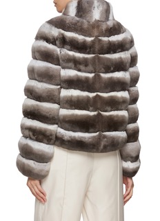 Indulge in opulence with this Chevite's chinchilla fur jacket. The rich, textured fur provides unparalleled warmth and a touch of elegance to any ensemble, whilst the minimalist design makes it a versatile statement piece. Perfect for the winter season.
