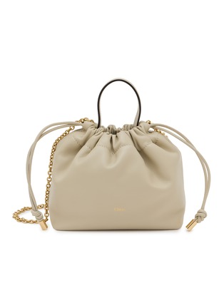 Indulge in the understated luxury of this cream Chloé drawstring bag, crafted from sumptuously soft leather for a refined touch. This elegantly designed accessory features a graceful drawstring closure topped with golden hardware accents and a contrasting interior that adds a delightful surprise. The chic, minimalistic exterior is complemented by a practical, adjustable chain and leather strap, offering versatility and style. Ideal for day-to-night transitions, this bag embodies the timeless elegance synonymous with Chloé.