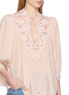 CHLOÉ Lace Panel Balloon Sleeve Blouse
